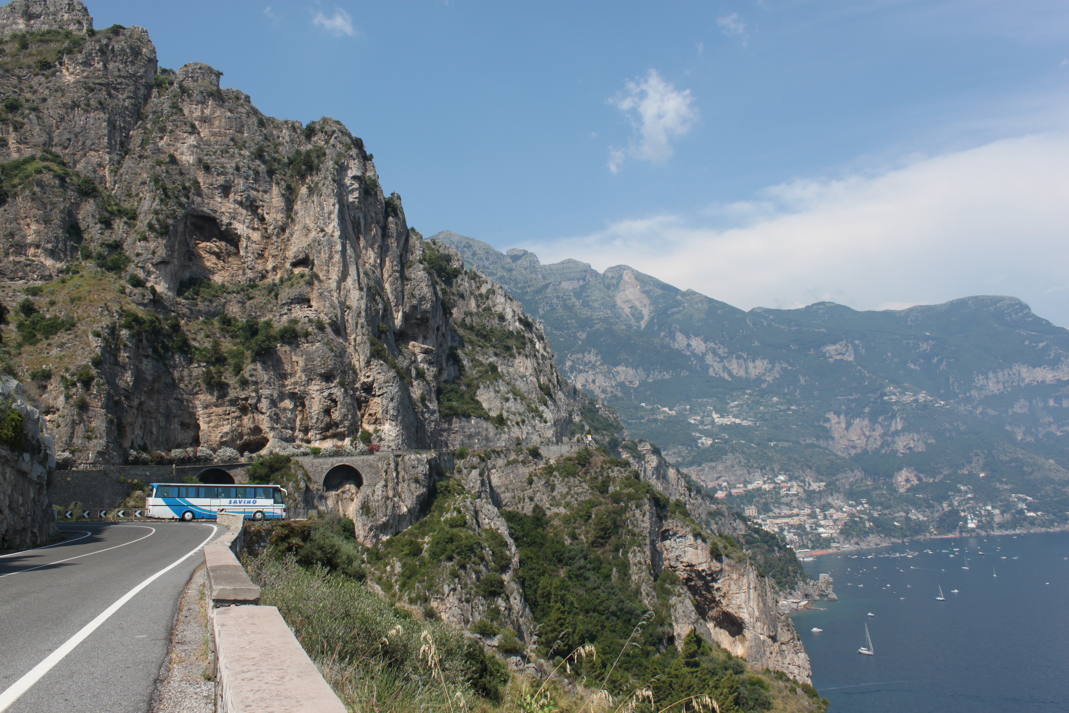 unbelievably twisty Amalfi coastline in my clunky mini-bus (pronounced “mini-boos”,